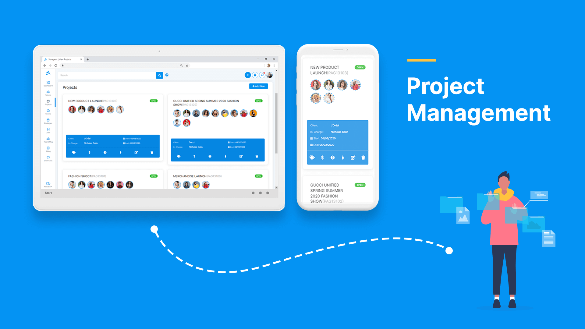 • Utilizing StarAgent’s project management feature, you can easily keep track of all your projects on one platform, see who is working on what, track work progress for each project, and check due dates, so nothing falls through the cracks.