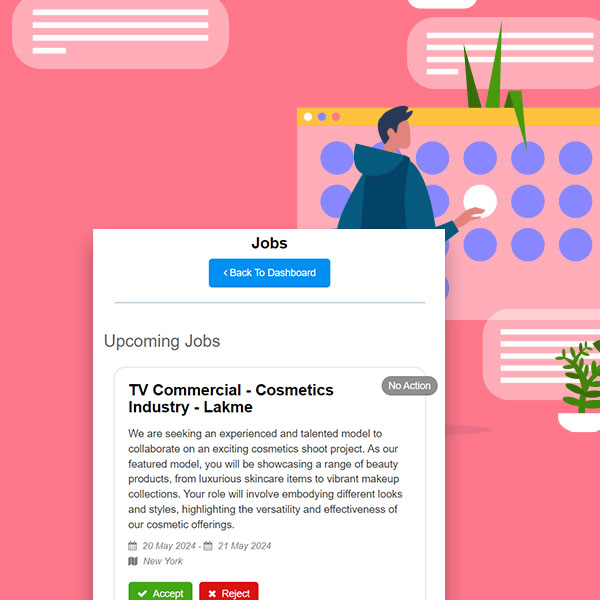 Your talent will have quick shortcuts to all the recent job listings and booking schedules here. With an instant view to all pending job requests and appointments which are still to happen, this offers your talent the utmost convenience.