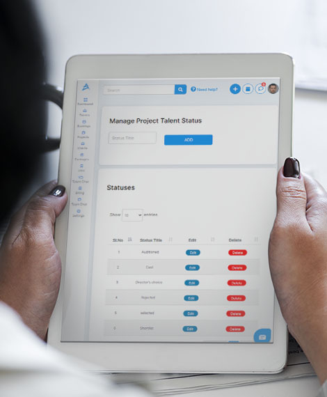 Agency users can even maintain and manage a list of talent statuses that can be used for talents added to a Project. Add multiple statuses from the ‘Manage Project Talent Status‘ menu in the settings tab, wherein you just have to enter the status name and hit ‘Add‘ to successfully add the status titles to the list.